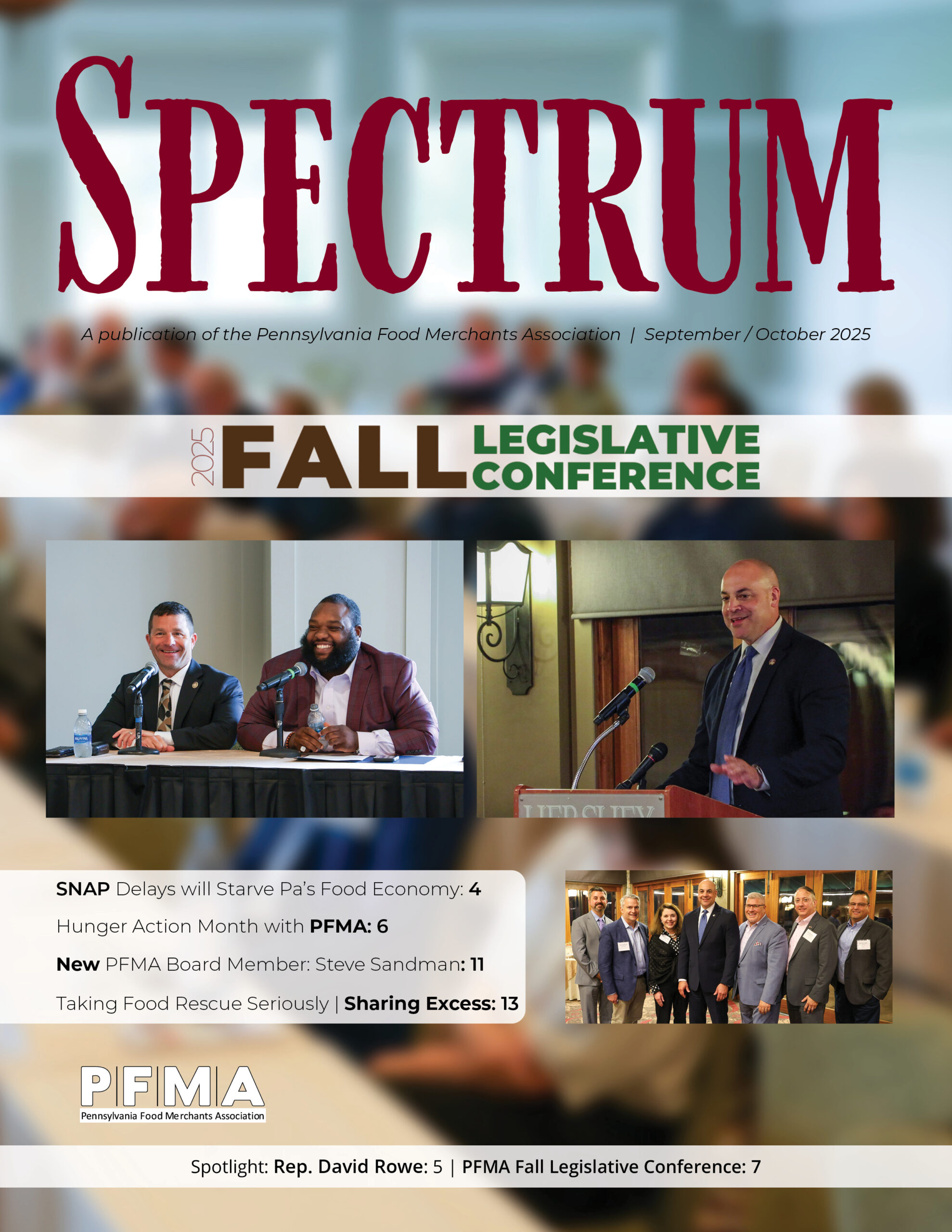 Spectrum is a bimonthly, magazine-style publication that covers all aspects of Pennsylvania’s retail food industry. It provides legislative/regulatory updates, member activities, association news, a Buyer’s Guide and advertisements from our Corporate Leadership Sponsors.